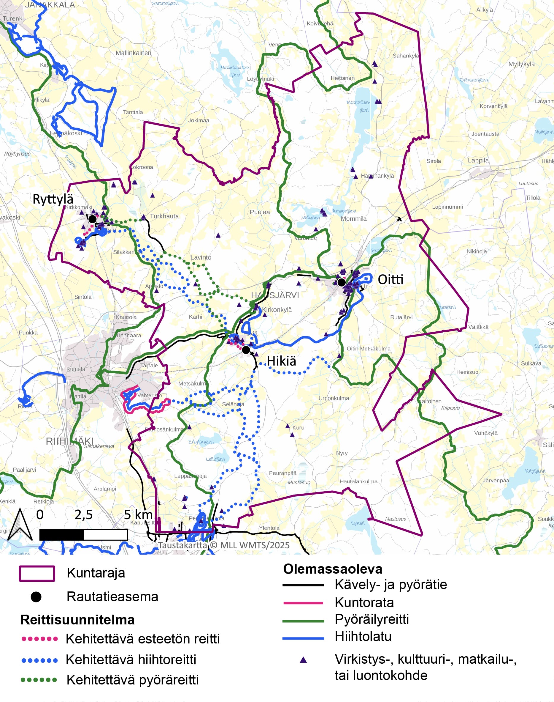 - Ulkoilureitit yhdistämään Ryttylän, Oitin ja Hikiän junaseisakkeet, sekä yhteydet Hyvinkään, Monnin ja Riihimäen suuntaan