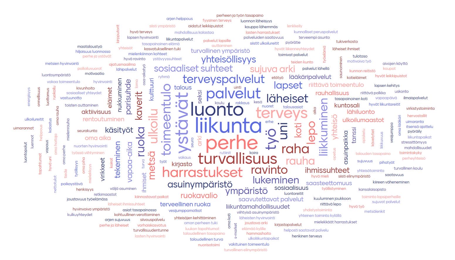 Täältä voit katsoa tarkemmin, minkä asioiden vastaajat kokevat edistävän eniten omaan hyvinvointia.