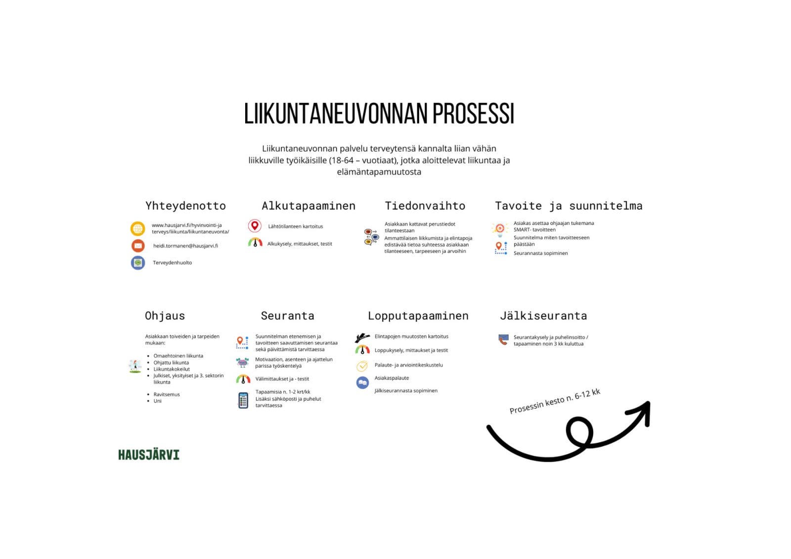 Hausjärven kunta tarjoaa terveytensä kannalta liian vähän liikkuville työikäisille kuntalaisille maksutta liikuntaneuvontaa! Liikuntatoimi on saanut aluehallintovirastolta Suomi liikkeelle -ohjelman kehittämisavustuksen työikäisten liikuntaneuvontaan vuodelle 2025. Liikuntaneuvonta on suunnitelmallinen ja tavoitteellinen prosessi, jossa yksilö etenee oman tilanteen, tarpeen ja arvojen mukaan kohti liikunnallisempaa ja terveempää elämäntapaa.