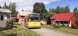 Hausjärven kirjastoauto Fannyn huomaa varmasti – se on pirteän oranssinpunainen kirjasto pyörillä.